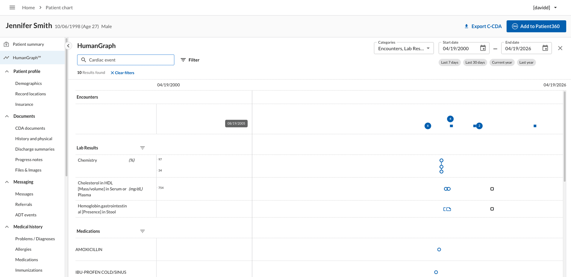 For example, during a cardiac event, they need immediate access to all relevant information—labs, medications, encounters—connected to that diagnosis, without switching contexts.